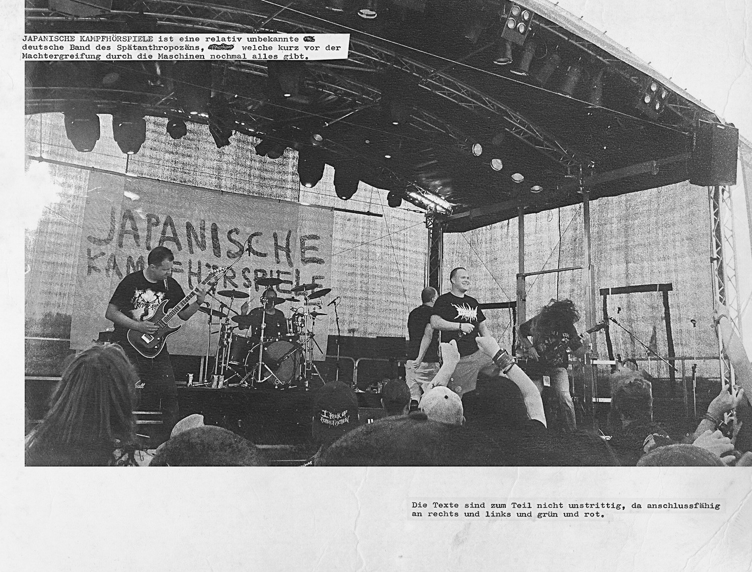 | 2001 | JAPANISCHE KAMPFHÖRSPIELE - NOSTRADAMUS IN ECHTZEIT ELEKTROKILL - BAGGABASSIN JAPANISCHE KAMPFHÖRSPIELE - BRANDSATZLIEBE JAPANISCHE KAMPFHÖRSPIELE - JAPANISCHE KAMPFHÖRSPIELE |
